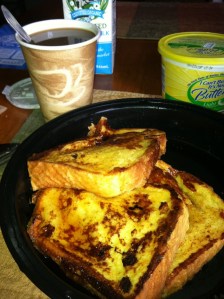 About 30 minutes later, french toast and coffee arrives from Big Daddy’s. This little gesture made my heart melt (something I normally don’t admit) because it was thoughtful and perfect and one of those “little things” that is really a big thing.